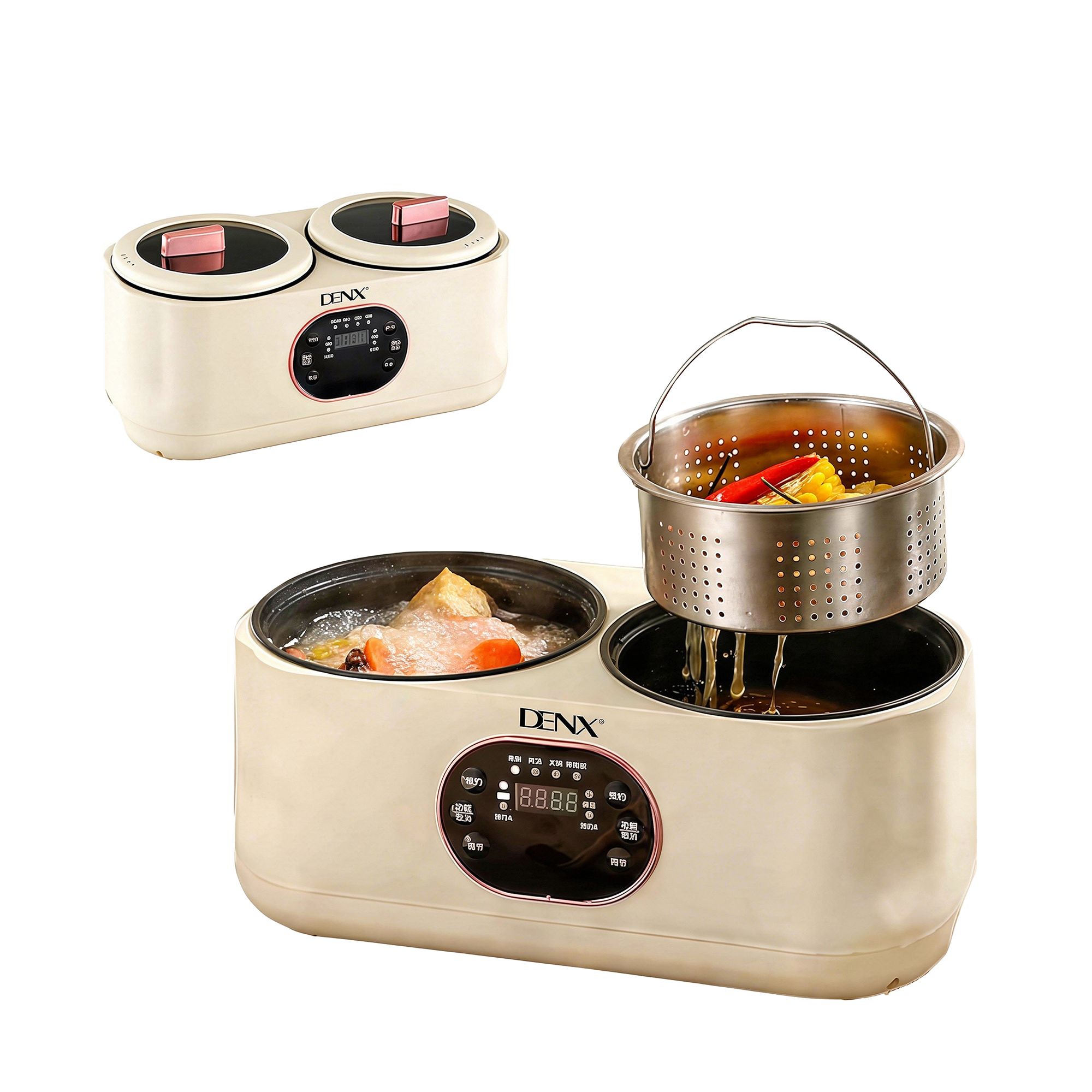 عرض جهاز الطبخ المزدوج الكهربائي دينكس بضمان عامين + قطاعة مندولين الذكية